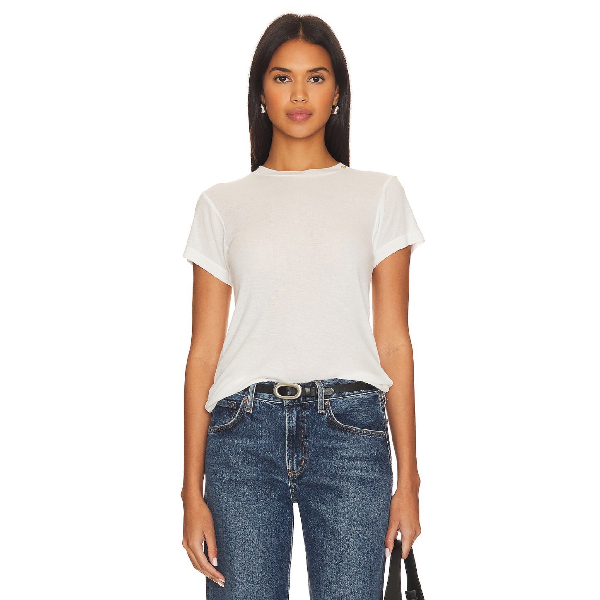 Elegate your basics with this perfect crewneck T-shirt constructed from a lightweight modal-cashmere jersey blend prioritizing ease and comfort.
