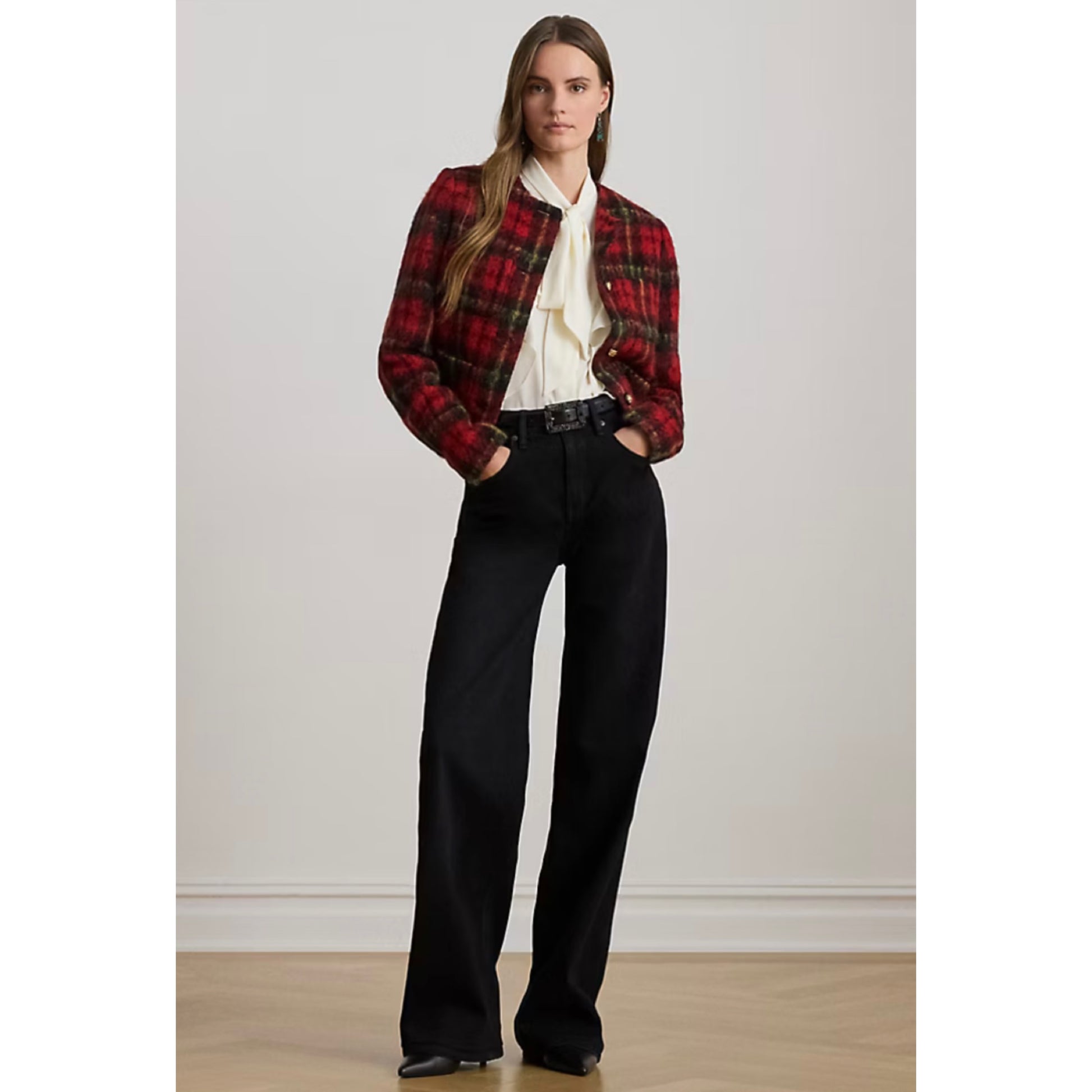 New w/ Tags Lauren by Ralph Lauren Plaid Mohair Cropped Jacket size 8.