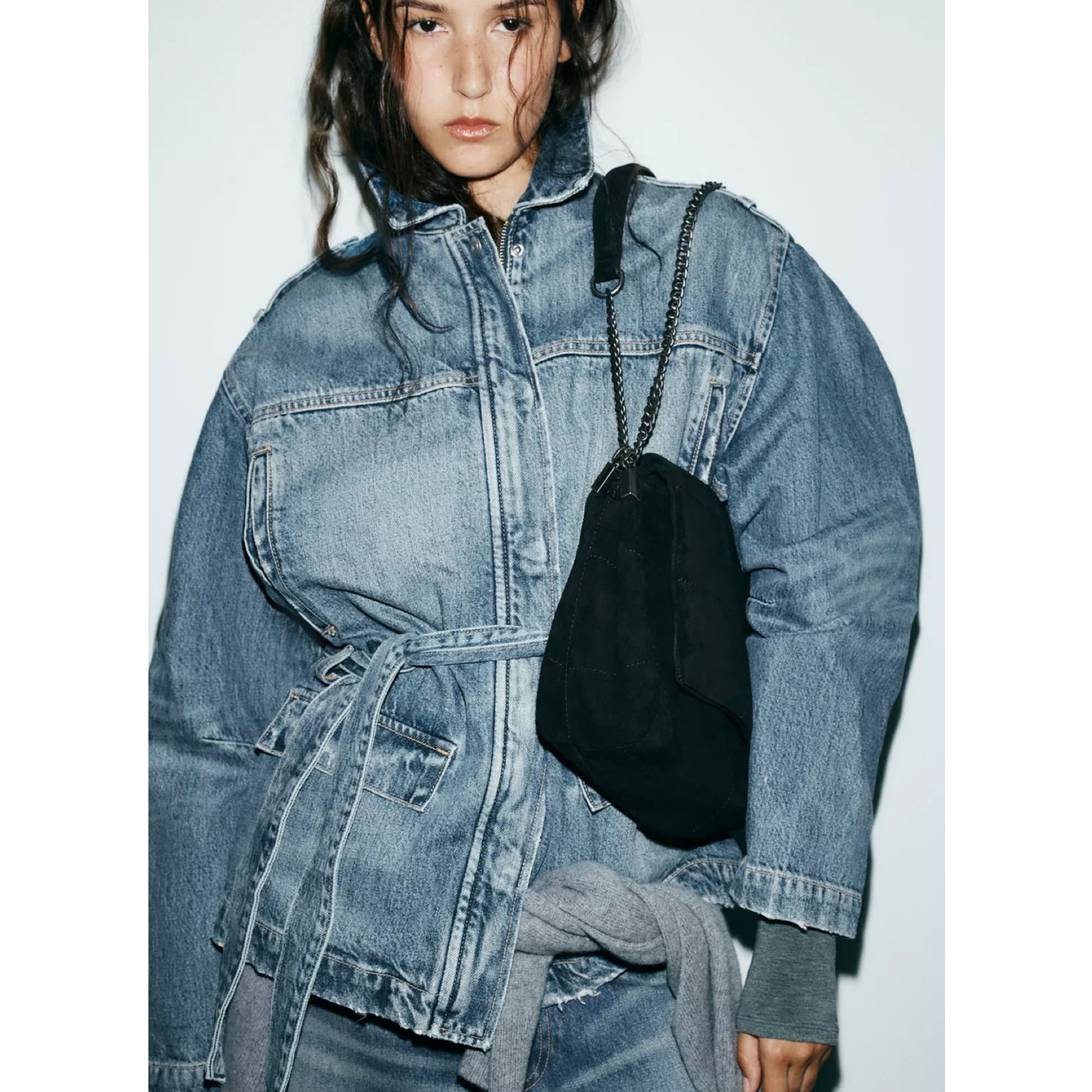 New w/ Tags Zara Split Leather Black Suede Shoulder Bag