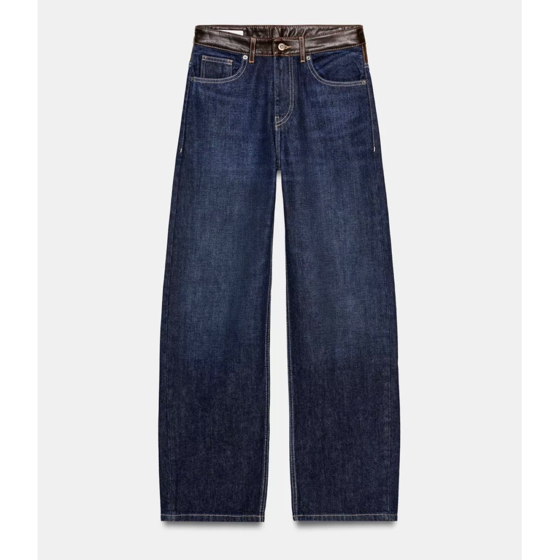 New w/ Tags Zara Wide Leg Jeans with Leather size 6.
